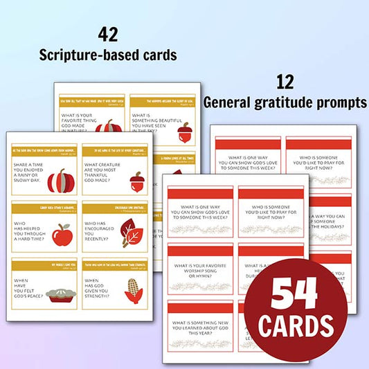 Thanksgiving Bible Conversation Starters – 54 Printable Cards | Scripture Gratitude Prompts & Christian Family Activity