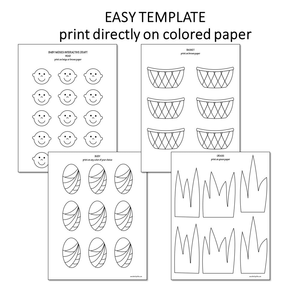This baby Moses paper plate interactive craft makes a great bible craft for kids and a Moses Sunday School lesson activity. It comes with an easy template that is printed directly on colored paper. Big patterns that are simple for little hands to cut.