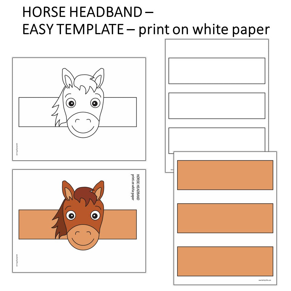 Make a fun and easy horse paper crown with kids before visiting a farm. The resource contains a horse paper hat template, both in color and black and white. Print, color, cut and use! Children can color their headband or use the colored horse