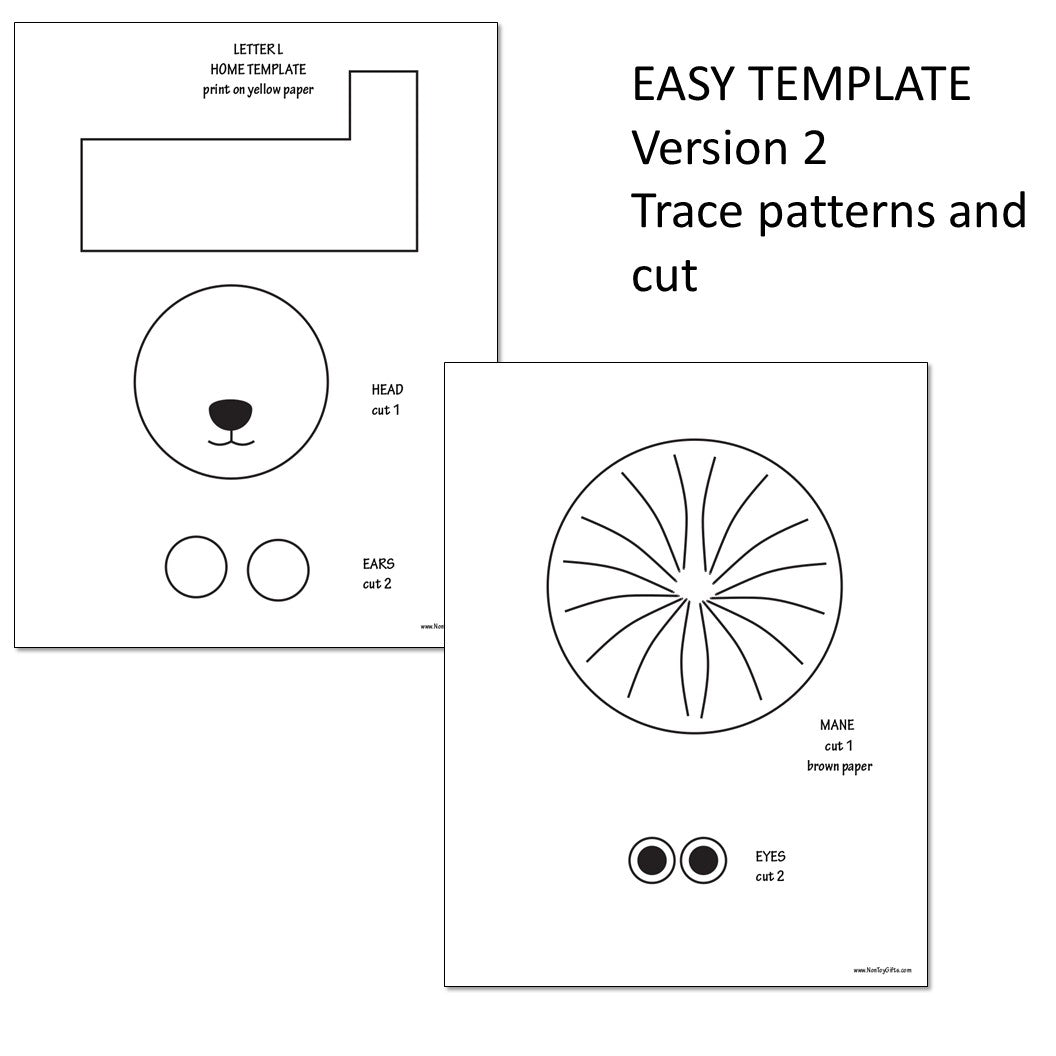 Kids will cut and glue pieces together to build the uppercase letter L that looks like a lion.