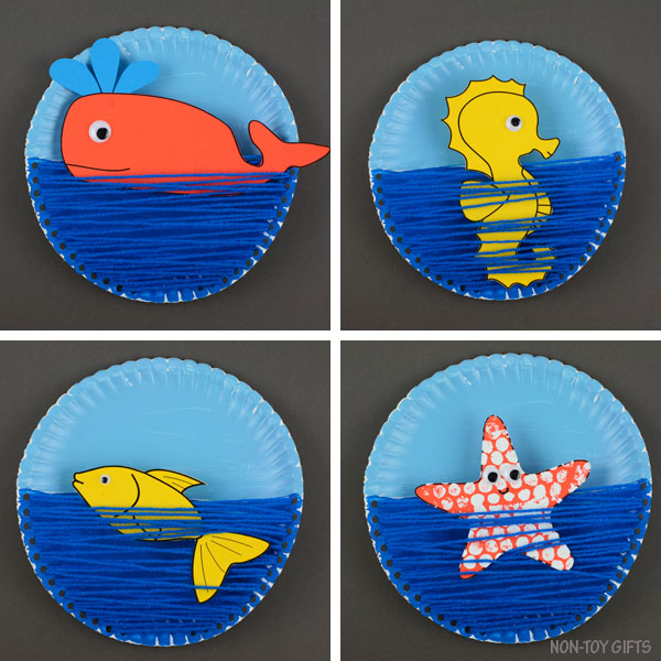 Use this fun paper plate craft to go along with an Under the Ocean or Sea Creatures theme or for a beach week. Help kids learn about whale, fish, star fish and seahorse.